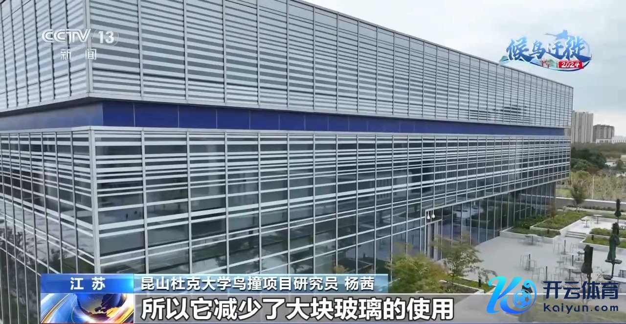 昆山杜克大学鸟撞形势商量员 杨茜:咱们在这个建筑的上半部分,加入了横格的打算,不才部分使用了格栅打算,是以它减少了大块的玻璃面积的使用,是以也起到了一定的防护效力。