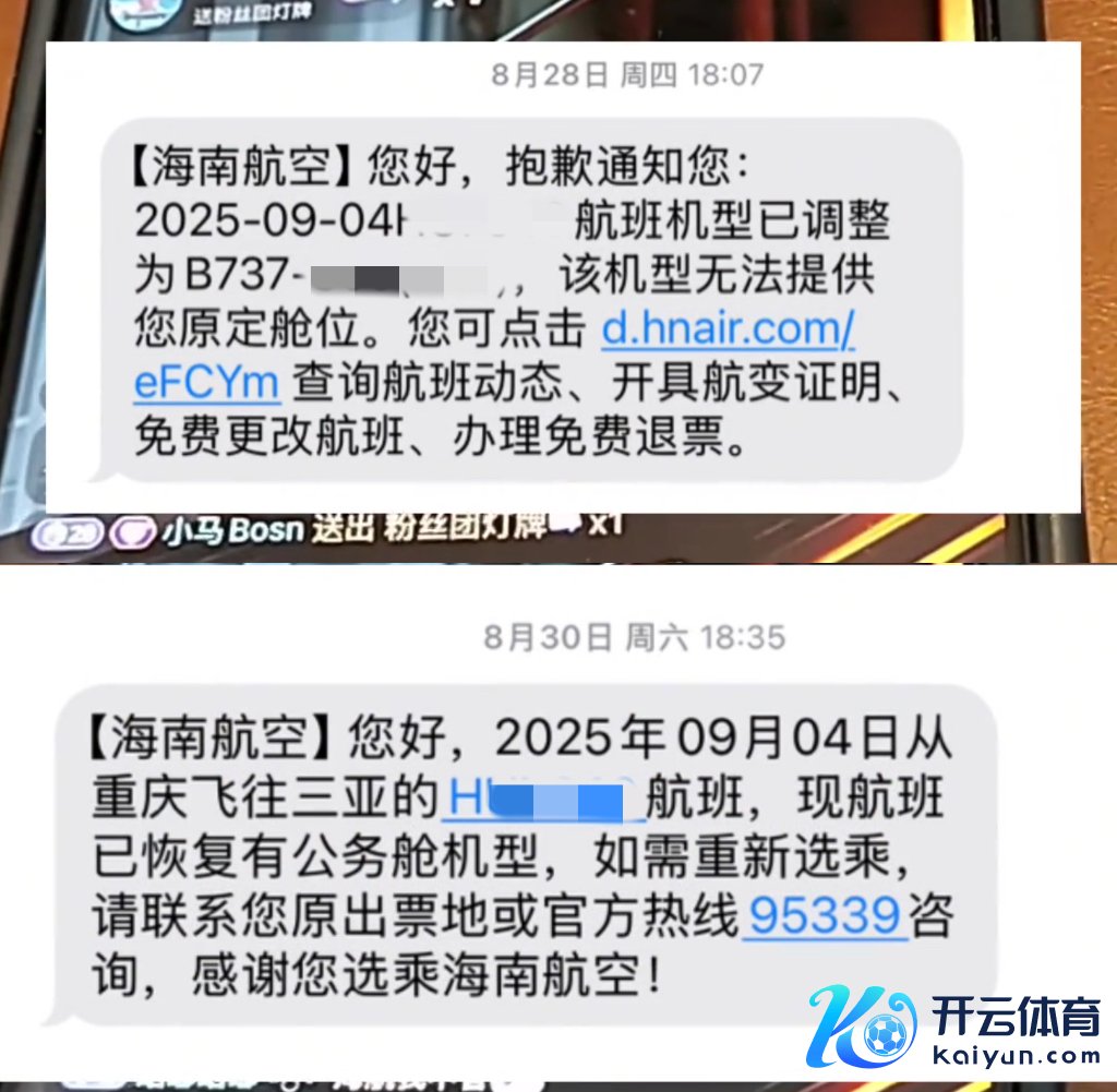 8月28日,他却收到海航的短信申诉,被奉告由于“机型变更”无法提供原定舱位。