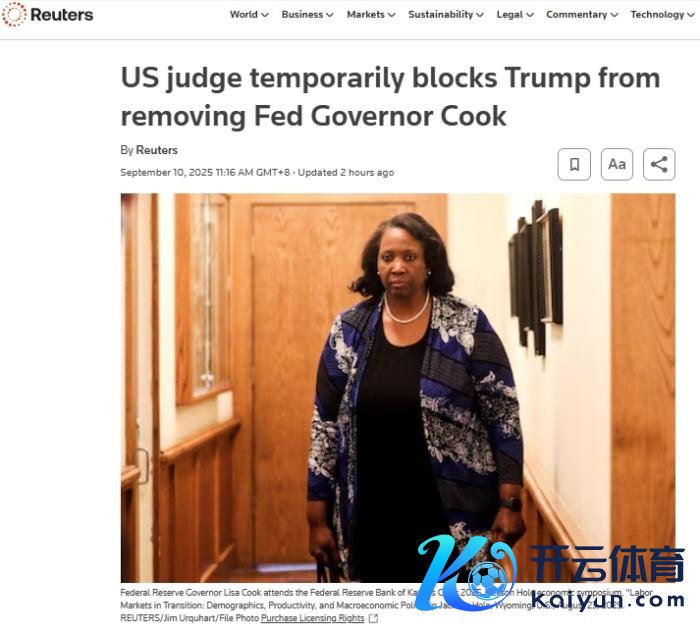 路透社提到,从历史来看,好意思功令律规矩,好意思联储理事只可因“正直情理”被撤免,但法律既未界说该术语,也未规矩撤免要害。摈弃现在kaiyun体育网页版登录,从未有总统撤免过好意思联储理事,这项法律也从未在法庭上受到检修。
