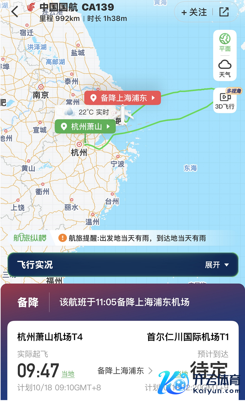 10月18日,有网友发布视频称,中国海外航空CA139航班在杭州飞往韩国首尔飞行经过中,行李仓冒烟发火,该航班机组东谈主员连忙介入处罚扑救,随后航班备降上海浦东海外机场。