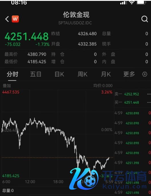 为止收盘,现货黄金报4251.45好意思元/盎司,跌1.73%。