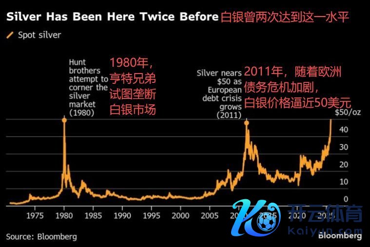 从历史上看,这并非白银第一次焚烧巨匠市集的设想力。1980年,在通胀苛虐与市集主宰的怒潮中,白银被得州亿万大亨亨特昆季推至50.35好意思元的高位;2011年,在量化宽松与避险花样的裹带下,白银再度靠拢这一心情关隘。但两次猖獗的行情均以大跌完结。